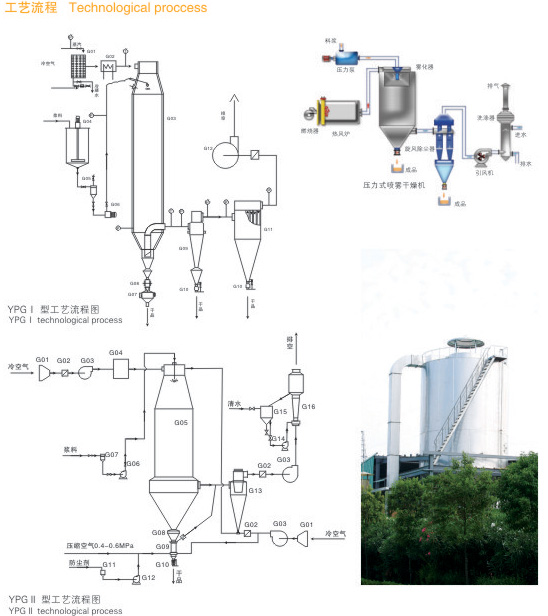 简述:压力式喷雾干燥造粒机是采用压力式雾化器借助隔膜泵的压力将溶液或浆状的物料雾化成