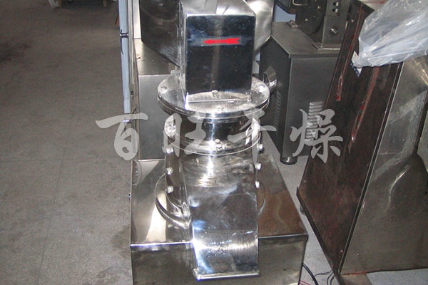 物料由进料斗送进粉碎室,经刀刃和刀座的冲击,旋转刀和固定刀同时剪切粉碎,由于受到旋转离心力的作用,物料自动从出口处流出。