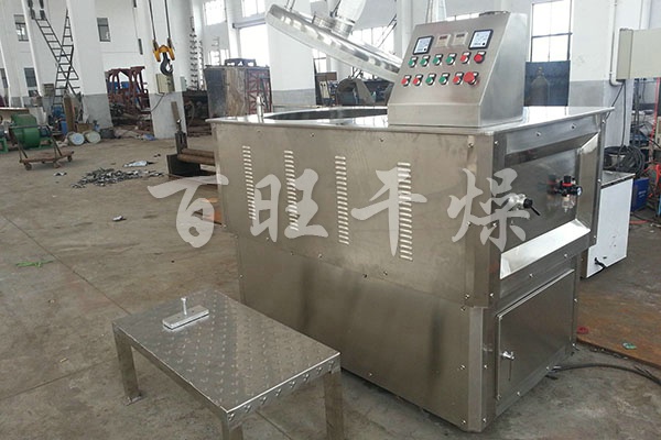 粉体物料与粘合剂在圆筒形容器中由底部混合浆充分混合成湿润软材,然后由侧置的高速粉碎桨切割成均匀的湿颗粒。