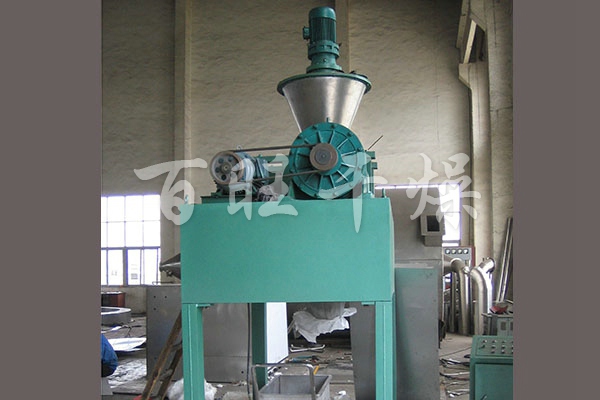 挤压造粒的形式可以有对辊式和轮辗式两种,对辊式挤压是先压成大块,再破碎成颗粒,这样装置的能力大、颗粒强度高、能耗低,对辊挤压在国外使用广泛。轮辗式是在辊表面直接做成有穴槽型的形状,一次挤成成型颗粒。产品强度较低有时需添加粘结剂。适合做有机肥和复合肥等颗粒肥料。